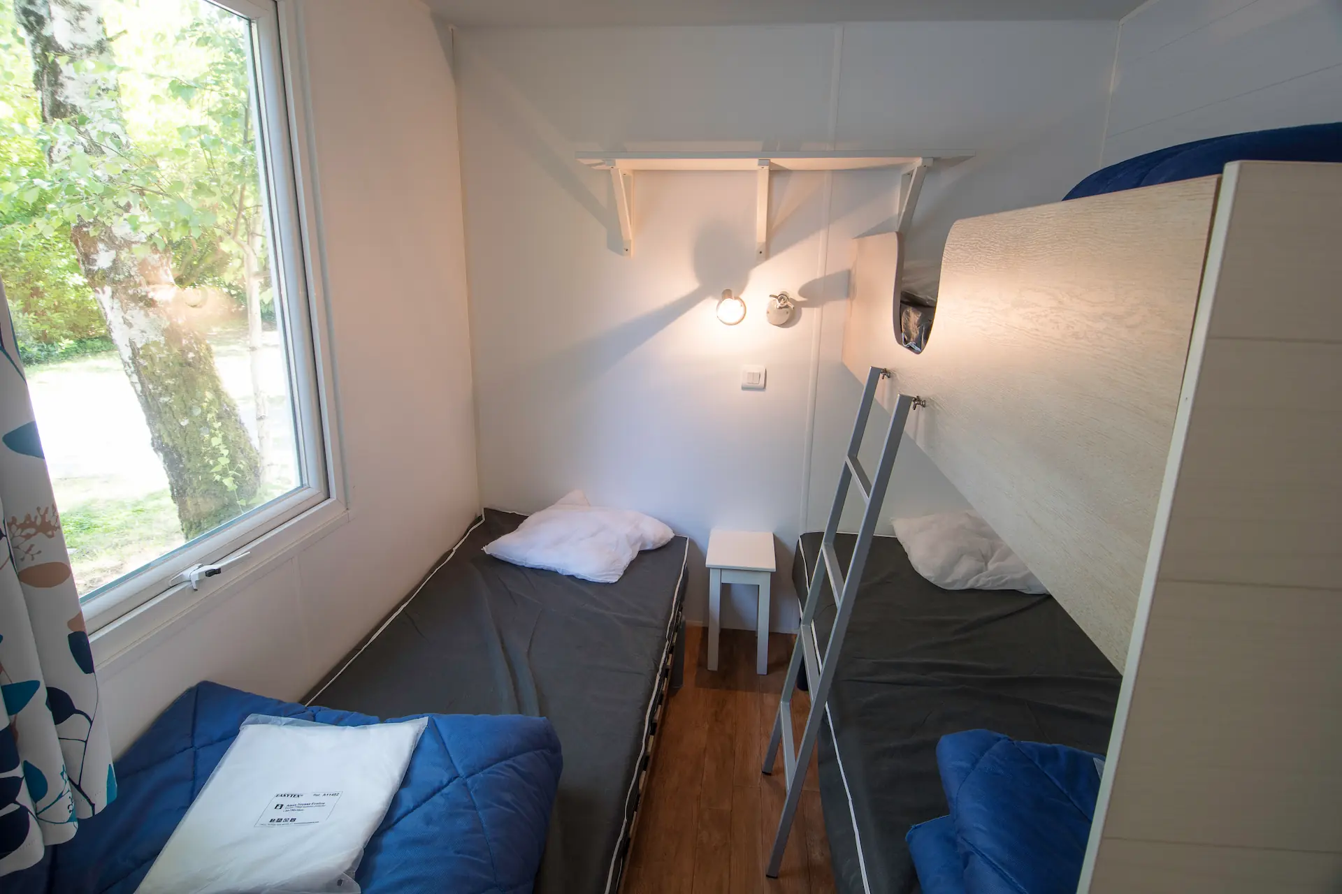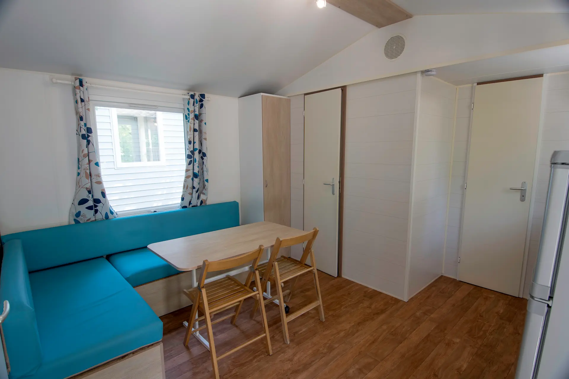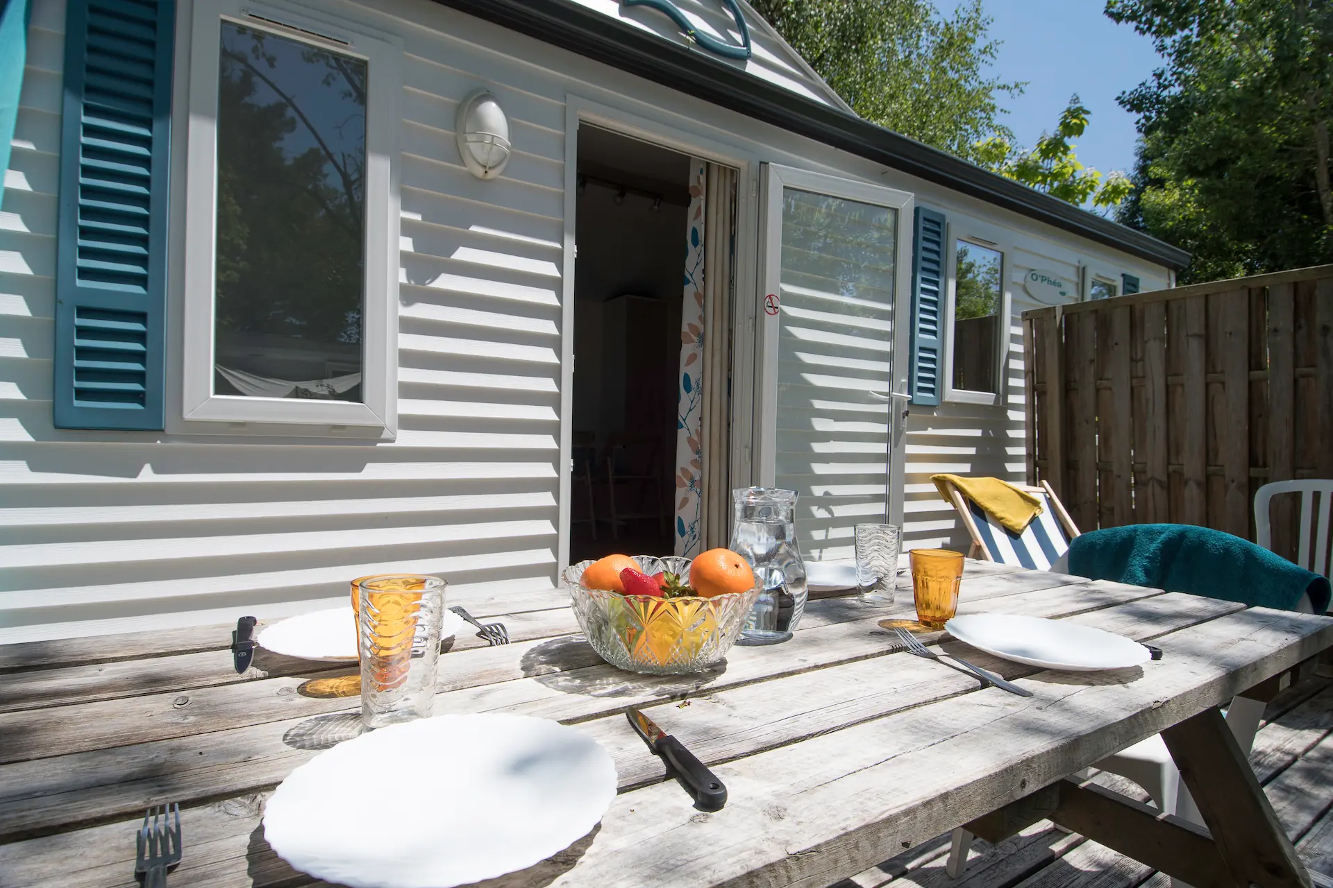 À la recherche d’une location de mobil-home sur le Bassin d’Arcachon ? Découvrez notre cottage 4/5 personnes – 2 chambres. La zone commune est équipée d’un canapé d’angle et d’une table de repas, suffisamment spacieux pour se retrouver en famille ou entre amis.