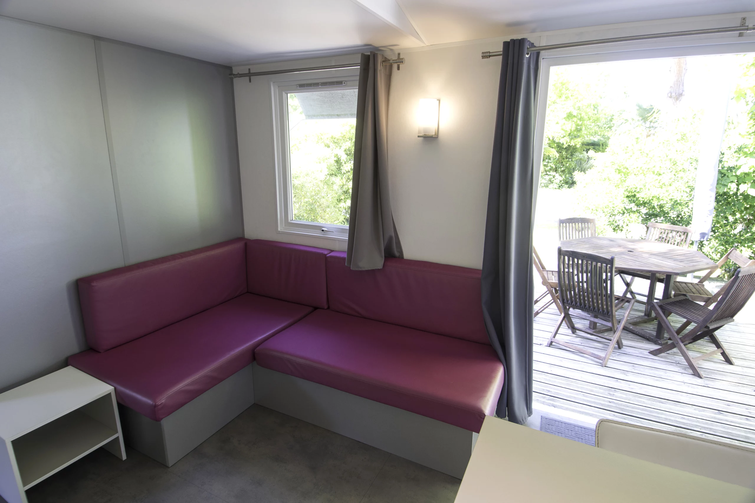 En poussant la porte du Mobil Color, vous découvrez le must du confort, exactement comme vous pourriez en rêver. La décoration contemporaine, discrète et élégante dégage une délicieuse ambiance cosy et feutrée.
